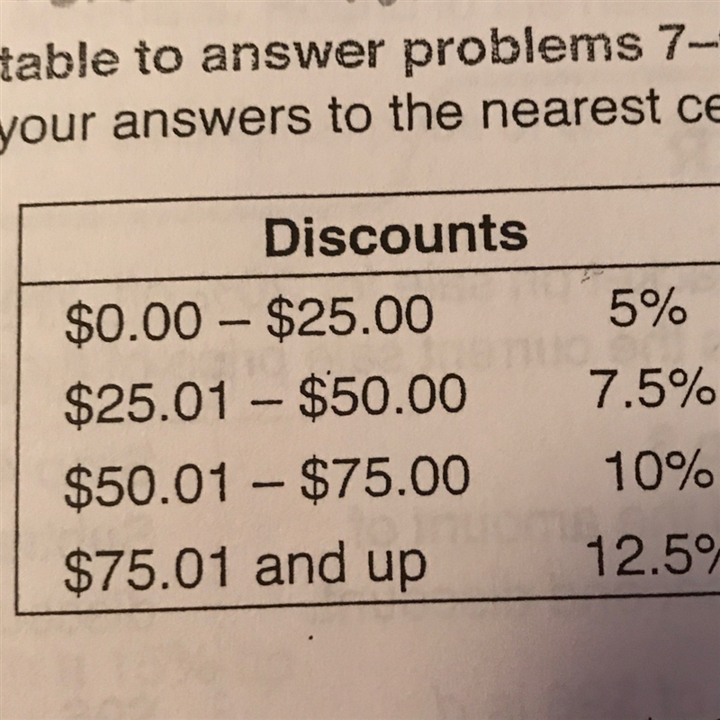 The original price of a pair of earrings is $34.80. Find the discounted price. There is a table for this.
