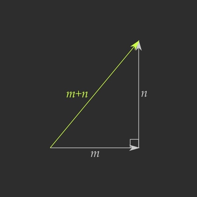The magnitude of m is 29.2 meter, and the magnitude of n is 35.2 meters. if m and n are perpendicular, what is the magnitude of their sum?