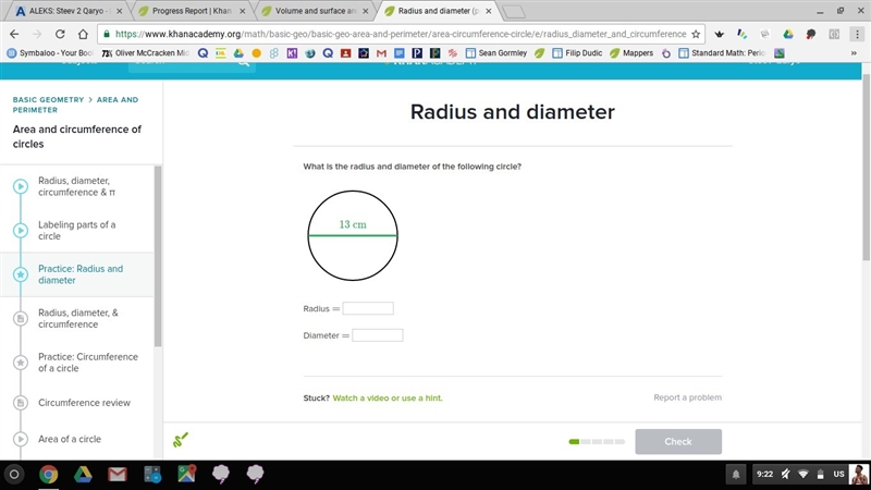 The diameter is 13 and the radius is 6.5. Hope it helps