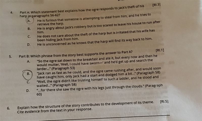 Can someone tell me what the (Rl.3) (Rl.1) an (Rl5) means. Does it mean the paragraph to help explain the answer? Please help need this today