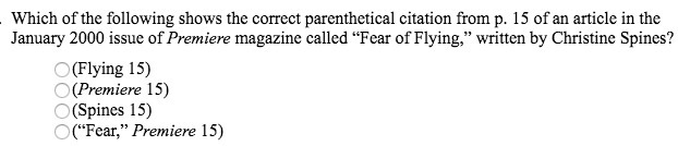 Which of the following shows the correct parenthetical citation???? PLEASE HELP!!!!