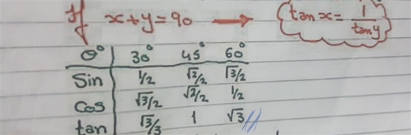 Note that the sin of an angle is equal to the cos of the complementary angle: