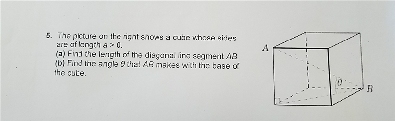 AB is the diagonal distance between the opposing vertices of the cube A and B. This length is the hypotenuse of the right triangle whose legs are one edge of the cube (the line segment AC) and the diagonal on the bottom face of the cube (the line segment BC).