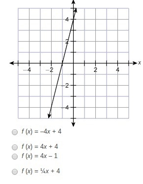 Pick any two points to find the slope. Slope=(y2-y1)/(x2-x1). I'll use (0,4) and (-1,0) to find the slope of y=mx+b...