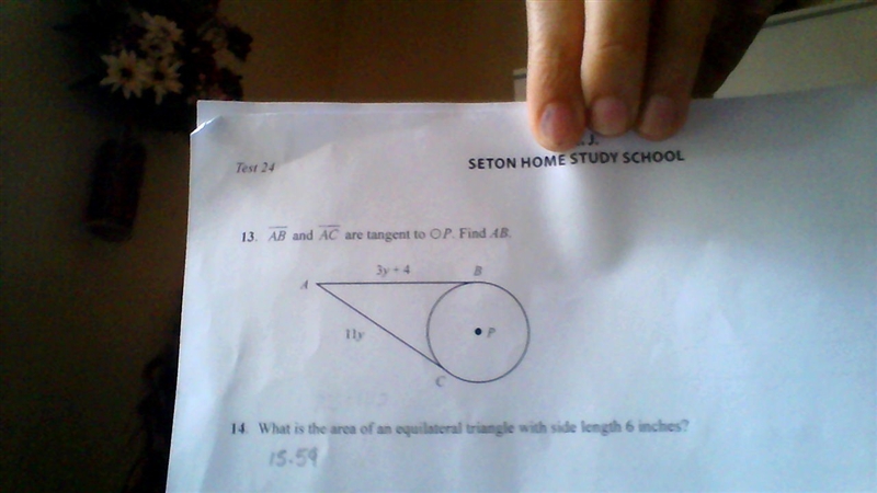 & y=1/2. Now plug y value in any of the equation & you will find AB = 11/2= 5.5