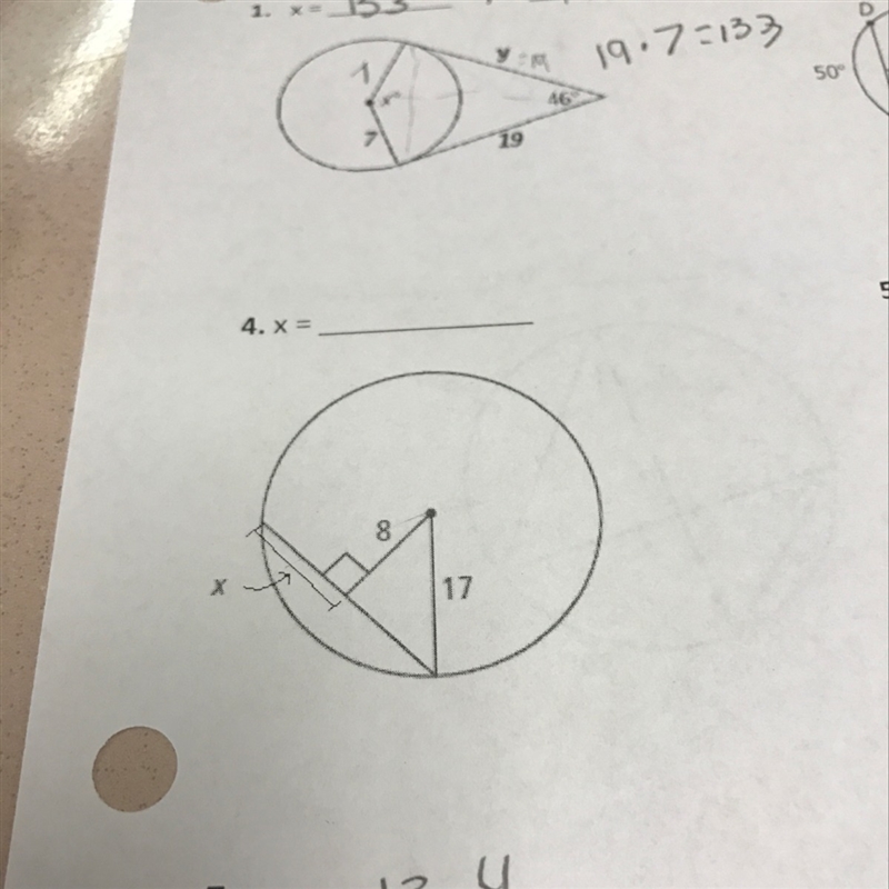 x^2 = 17^2 - 8^2
