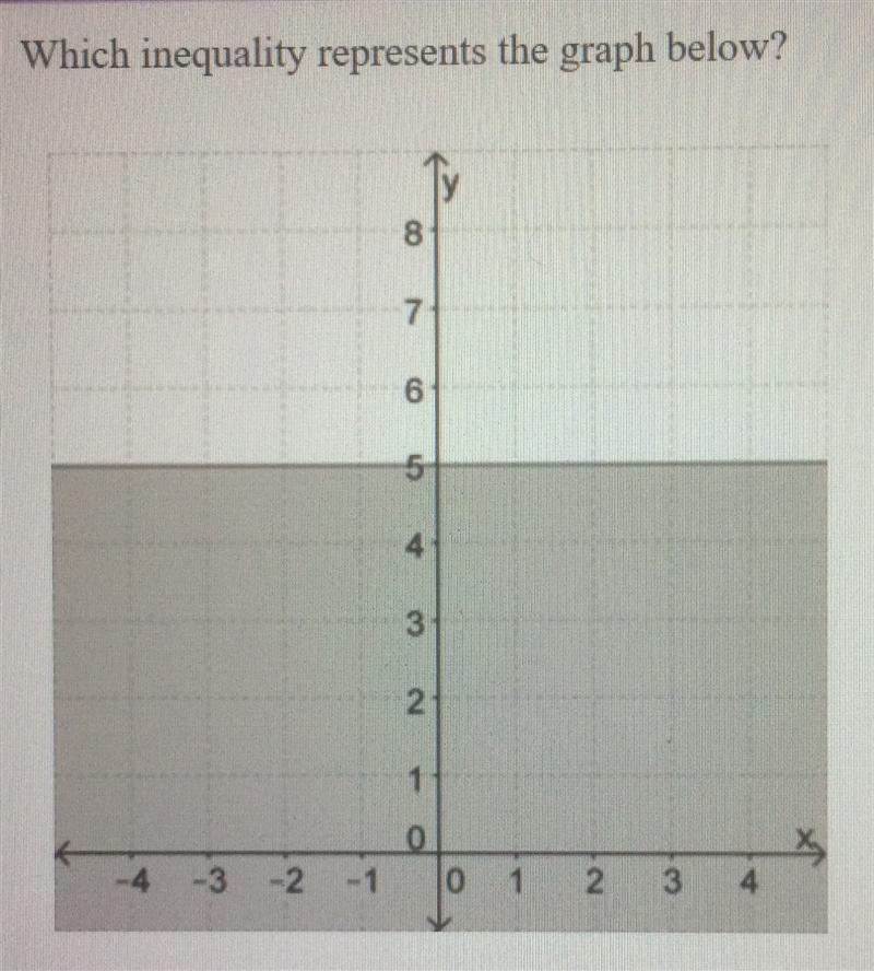 This is y≤5, so answer C. All the points in the shaded area have an y coordinate smaller than (or equal to) 5.