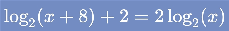 Hello, I need help finding the solutions of the equation log base 2 (x+8)+2=2 log base 2 (x) Thank you