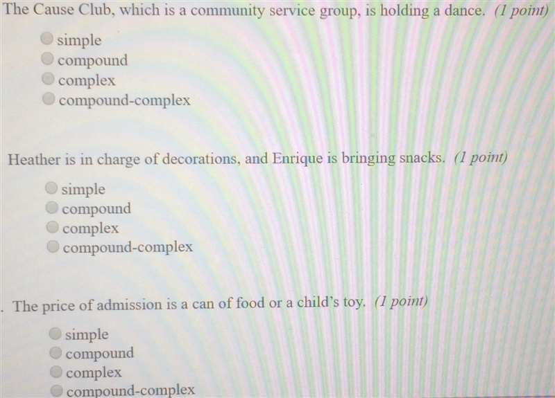 2. compound, due to it having a 'and' and a comma before and
