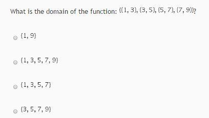 It is 1 to 7 since the lowest set of points is (1,3) and the highest points are (7,9) and you want to look at the x points. So the lowest x is 1 and the highest is 7. That would be your domain.