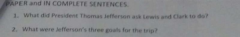N COMPLETE SENTENCES. PAP an 1. What did President Thomas Jefferson ask Lewis and-example-1