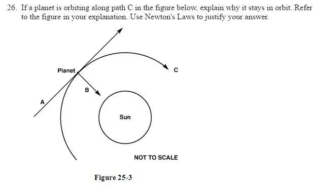 When one body(sun) exerts a force on a second body(planet), the second body simultaneously exerts a force equal in magnitude and opposite in direction of the first body. Which makes the planet orbit in path C.