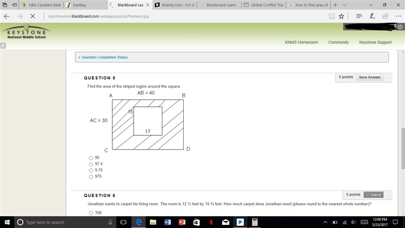 Can someone please help me!!!! Find the area of the striped region around the square-example-1
