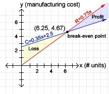 In the graph, if the number of manufactured units falls below 6.25, then the business will be operating in what state?