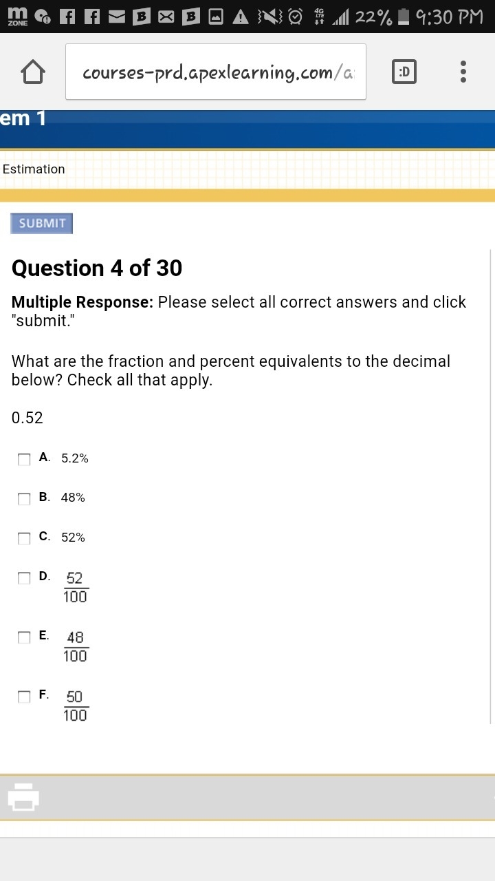 What are the fraction and percent equivalents to the decimal below? Check all that apply.