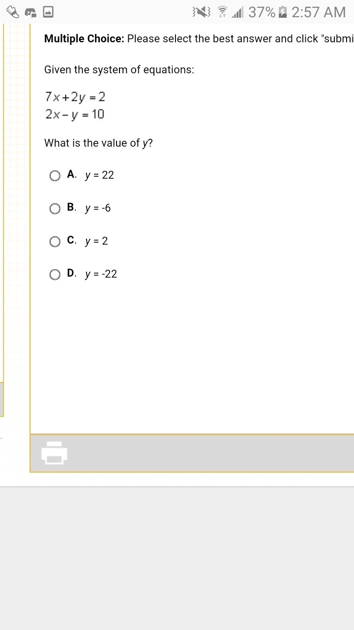 In short, the answer would be : y = -6 (Option B).Hope this helps !