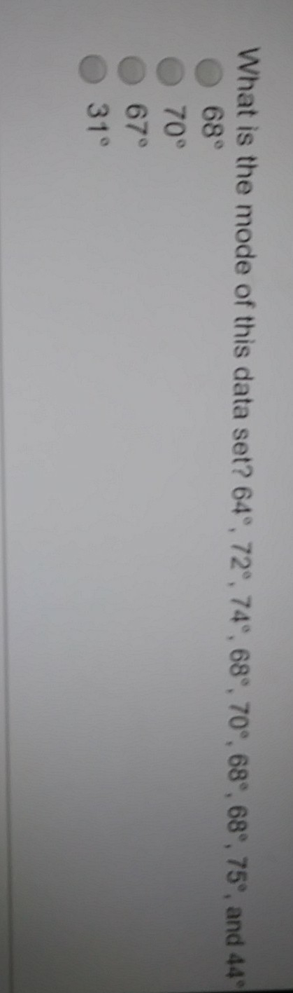 68° is he number that occurs the most out of these numbers. It appears three times.