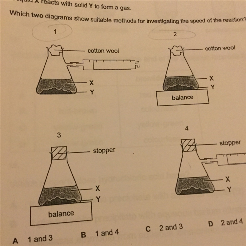 3 does not work: the gas is trapped and the mass balance does not record a change in mass.