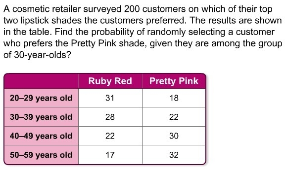 The answer is B) because out of 50, 22 chose the pretty ink. This as a decimal is 0.440