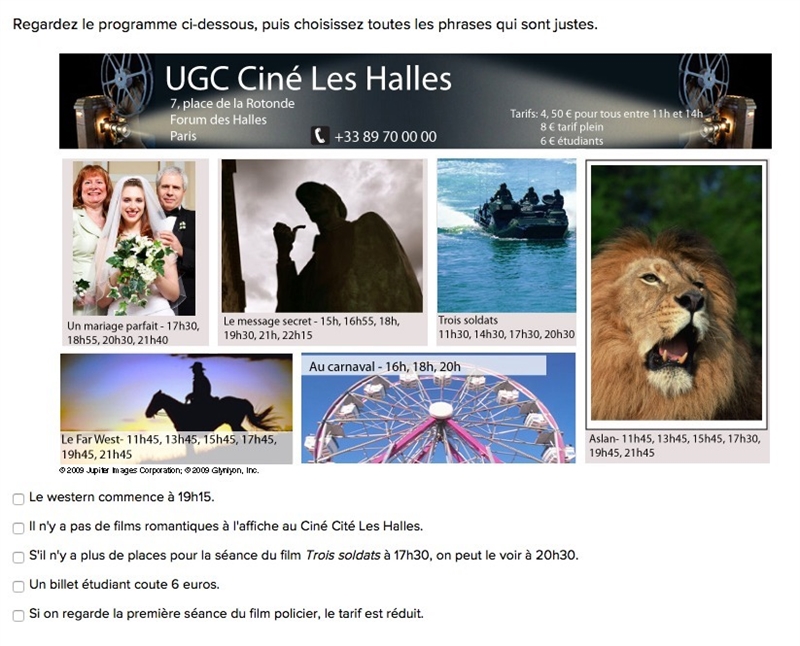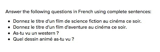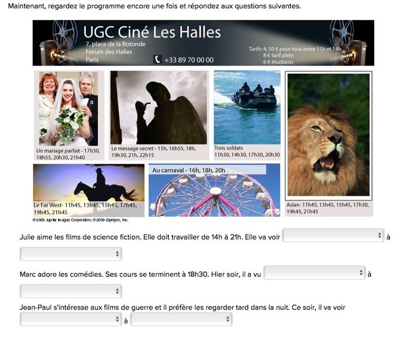 Julie aime les films de science fiction. Elle travaille de 14 h à 21 h.Elle va voir