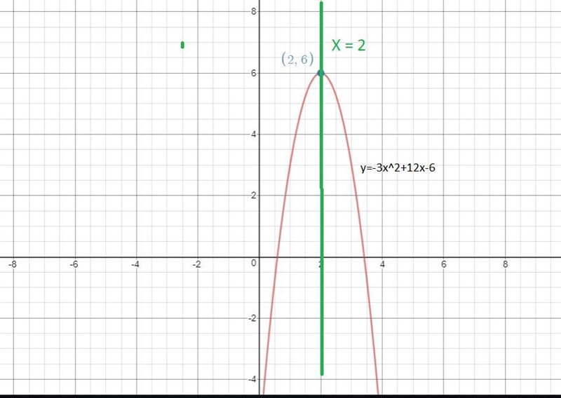 f(x)=-3x^2+12x-6\\\\\Rightarrow f(x)=-3(x^2-4x)-6\\\\\Rightarrow f(x)=-3(x^2-4x+4)+12-6\\\\\Rightarrow f(x)=-3(x-2)^2-6.
