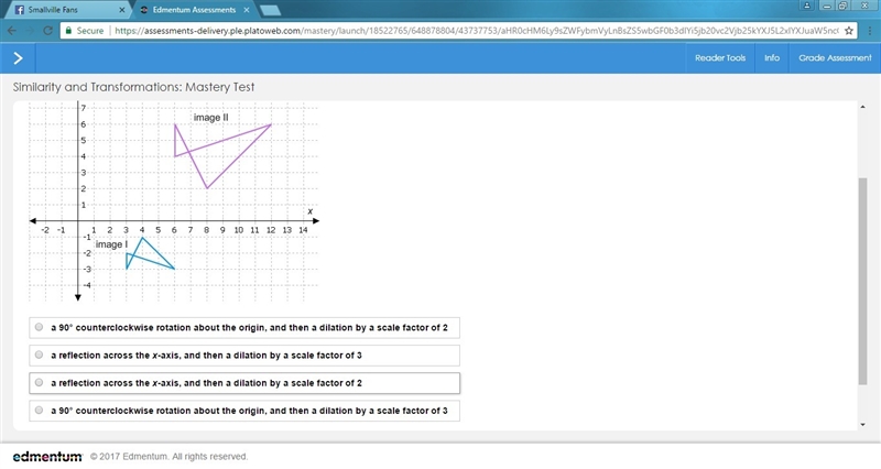 Answer is choice C) reflection over x axis; dilate with scale factor 2