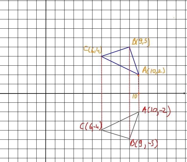 1. Let A(a,b) be a point in the coordinate axis. The reflection of A with respect to the x-axis is the point A'(a, -b).