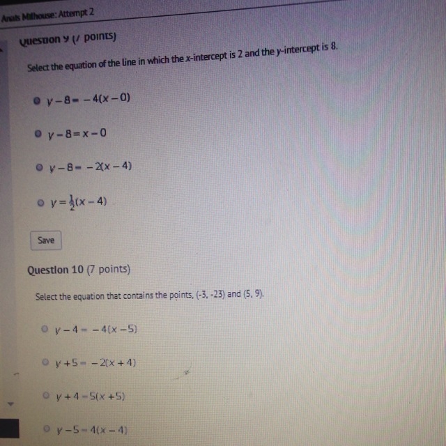 9 is A. To find y set x equal to zero. To find x set y equal to zero.
