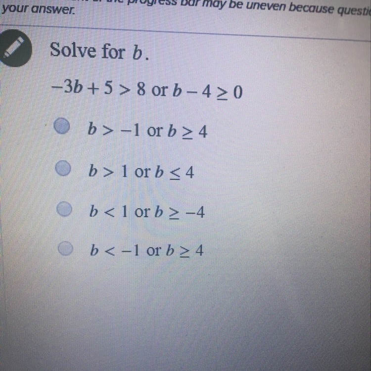 -3b+5>8 or b-4> or = 0