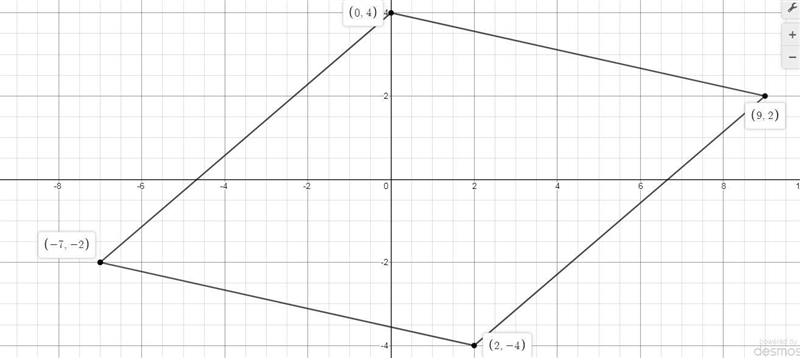 ![\bf -------------------------------\\\\ \begin{array}{lllll} &x_1&y_1&x_2&y_2\\ % (a,b) J&({{ -7}}\quad ,&{{ -2}})\quad % (c,d) L&({{ 9}}\quad ,&{{ 2}}) \end{array} \\\\\\ % slope = m slope = {{ m}}= \cfrac{rise}{run} \implies \cfrac{{{ y_2}}-{{ y_1}}}{{{ x_2}}-{{ x_1}}}\implies \cfrac{2-(-2)}{9-(-7)}\implies \cfrac{2+2}{9+7}]()