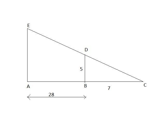 Length of shadow of flagpole = AC = AB + BC = 28 +7 = 35 ft