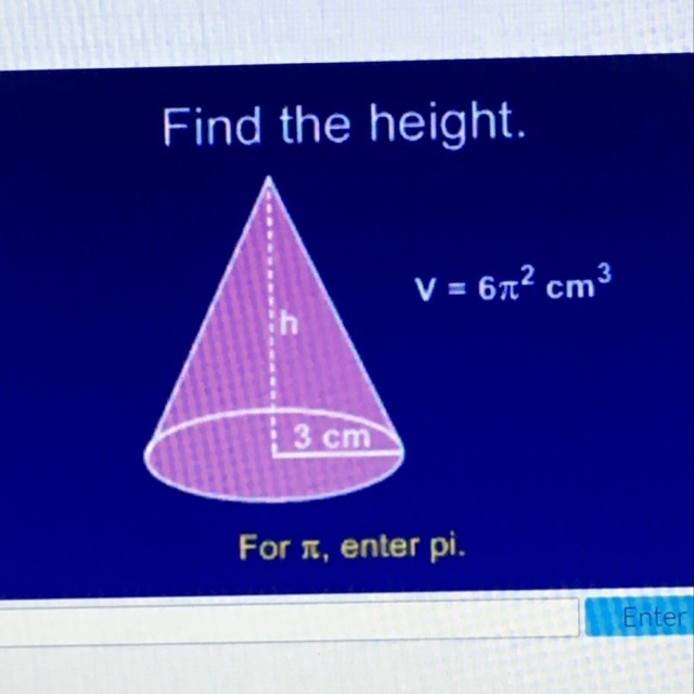 h=3V/(pi*r^2)=6*pi^2 / (pi*3^2) = 2pi cm