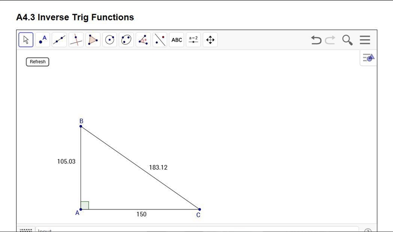 Going from b we know 150 is are opposite and 105.03 is adjacent so this would be tangent opposite/adjacent
