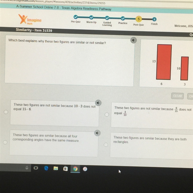C.) These two figures are not similar because 6/15 does not equal 3/10