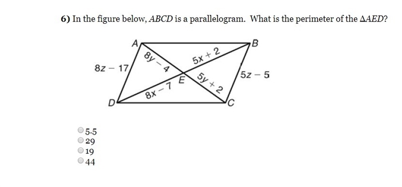 In the figure below, ABCD is a parallelogram. What is the perimeter of the ΔAED?