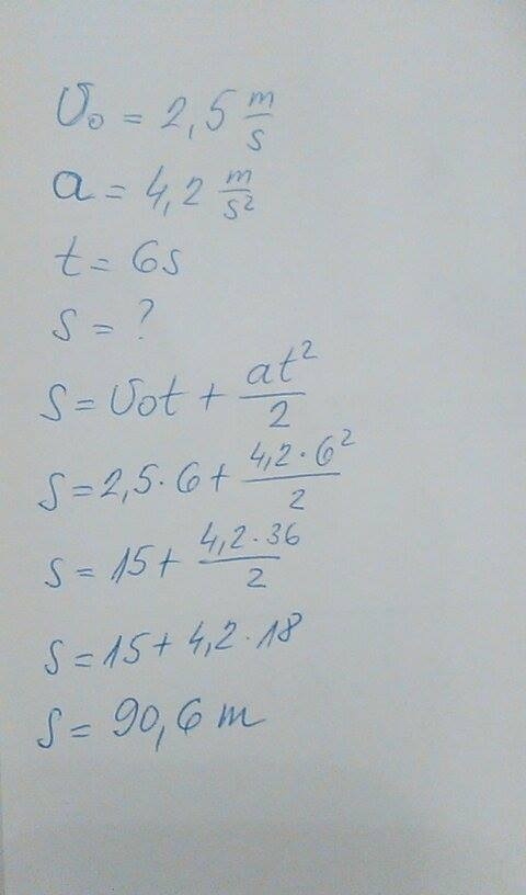 A boat takes off from the dock at 2.5 m/s and speeds up at 4.2 m/s2 for 6.0 s. How far is the boat traveled?