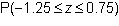 → P(-1.25 ≤ Z ≤ 0.75)