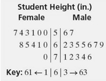 2. Use the stem-and-leaf plot to answer each question. a. How many males are 65 inches tall? b. What is the height of the shortest male? The shortest female? c. What is the heig…