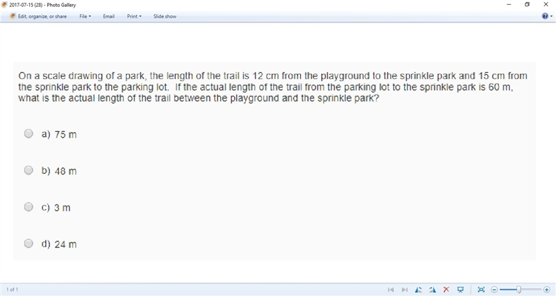 Another way, if 15 cm are 60 m, then 12 cm are: