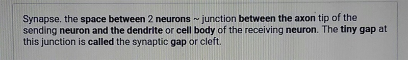 A _____ is a tiny space between the axon of one neuron and the dendrites or cell body of another neuron. glial cell reticular formation synapse basal ganglia