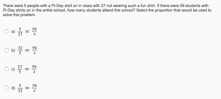 Five out of 35 (27+5) students wear a fun Pi-Shirt.