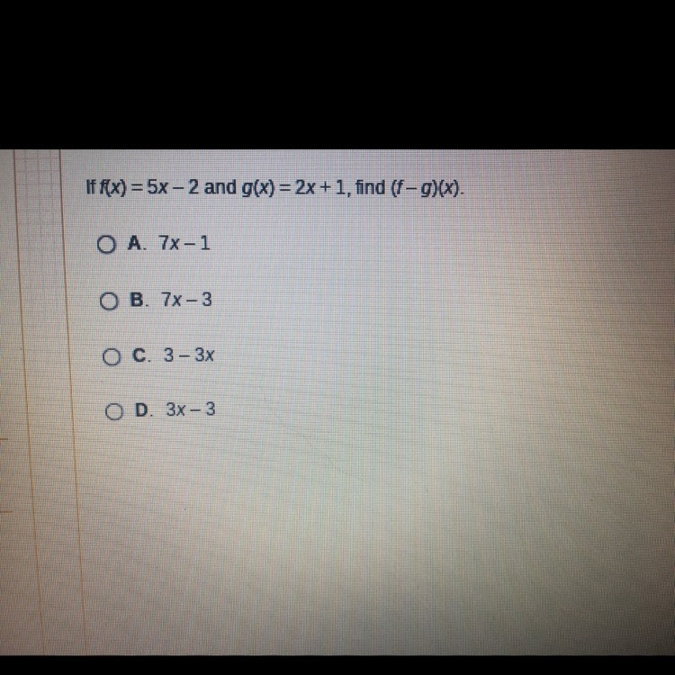 (f-g)(x) = 5x - 2 - 2x - 1