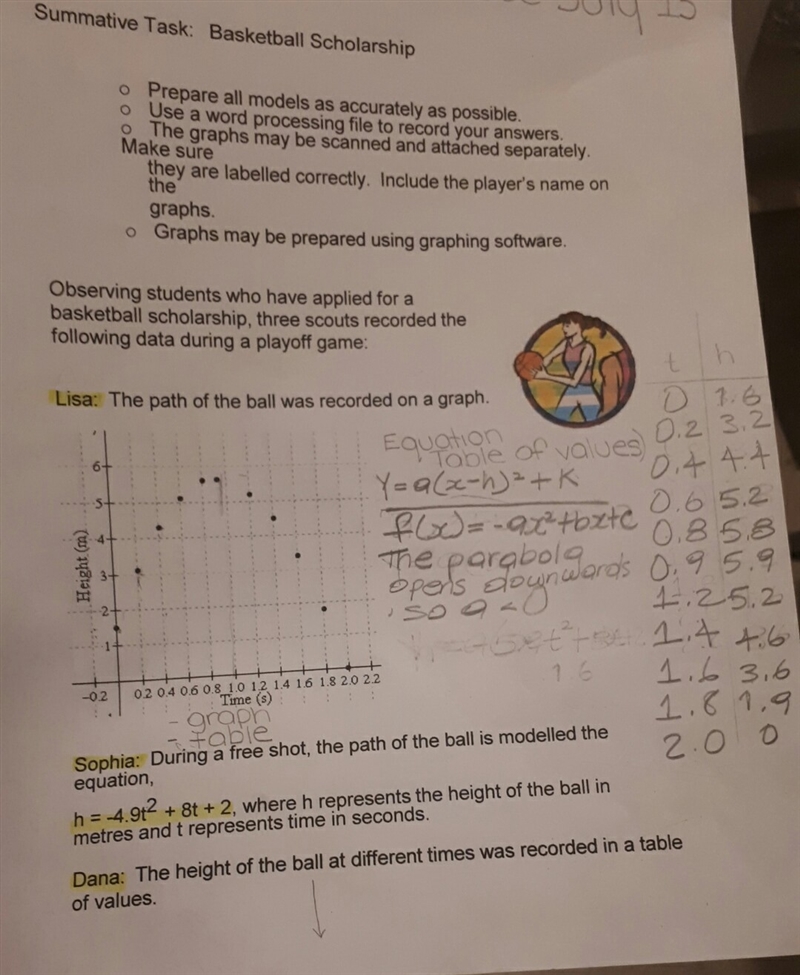 based on that table of values, we know the highest point(vertex) is at 0.9, 5.9