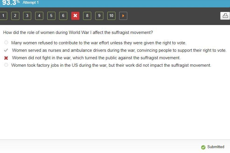How did the role of women during World War I affect the suffragist movement?-example-1