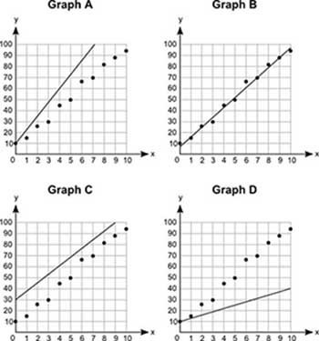 Four graphs are shown below: Which graph best shows the line of best fit? Graph A Graph B Graph C Graph D