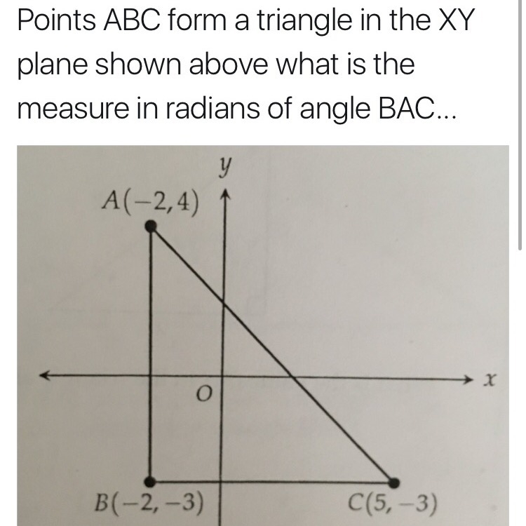 So BAC = 45 degrees, which is 45 / 360 * 2pi = pi/4