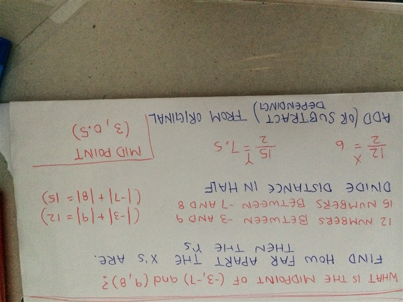 What is the midpoint of (-3,-7) and (9,8)