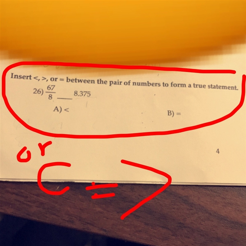 Yes it's B. Because 67 divided by 8 is 8.375 so therefore it's equal (: