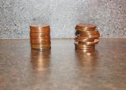 The stack on the left is made up of 15 pennies, and the stack on the right is also made up of 15 pennies. If the volume of the stack of pennies on the left is 360 mm3, what is the volume of the stack of pennies on the right in cubic millimeters? Use 3.14 for pi. (Hint: only enter numerals in the answer blank)