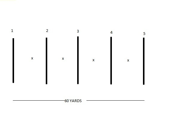 If you try to imagine a walkway has a total of 60 yards starting from the first streetlight down to the last streetlight. Knowing that there are a total of five streetlights all in all, that means there are only 3 left to space evenly between the first and the last streetlight. Consequently, there would be four spaces all in all. Please see the picture so that you would understand better.